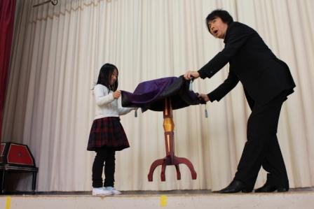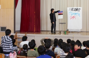2015年12月14日 18時22分 皆さんは、「要田の春秋」という歌を知っていますか?昇降口入ると、正面の鏡の隣の額には「要田の春秋」という歌の詩が書かれています。要田小にお世話になってまもなく2年になりますが、わかりませんでした。今日の午前中に、漆原さん(郡山市で「横溝」という会社を経営)という方が来られました。昭和22年に郡山から疎開してきて要田小学校に入学した方でした。「けやきの森」にも寄ってきたとのこと。たくさんの折り紙を作ってこられて、子どもたちに渡して欲しいとのことでした。新聞の広告で作った「シュリケン」が3個輪ゴムで留められていて、その中には「鶴」や「カブト」などがはさめられていました。生活科の授業で使わせていただき、1・2年生で使用したいと思います。ありがとうございます。帰り際に、「私が作った歌があり、額に飾られている」というので教えていただくと、昇降口前に掲示してあった「要田の春秋」の歌だったのです。びっくりしました。どんな歌なのかをお聞きしなかったので、今度来校して下さった際には、聞いてみたいと思います。保護者の皆様は、「要田の春秋」という歌を知っていますか?