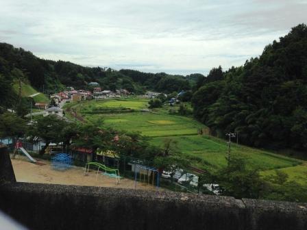 【写真下段右:巡視した屋上から、要田駅方面を見下ろします。たんぼの緑がきれいですね。】