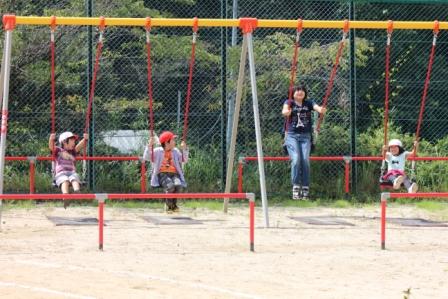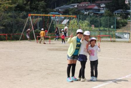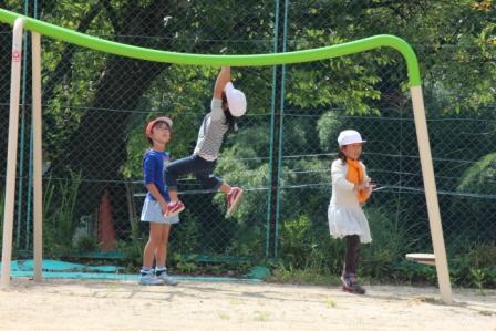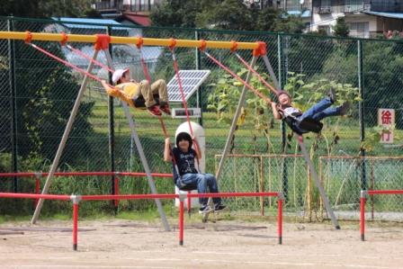 2015年9月15日 13時16分 今、子どもたちは元気に校庭で遊んでいます。5・6年生も出てきてサッカーで走り回っています。最初に出てきたのは2年生。ブランコで遊び始めます。ブランコしりとりです。うんていやジャングルジムでも遊びました。次にできたのは3・4年生の女子です。子どもたちの笑顔と青空がすてきでした。もうすぐ清掃です。