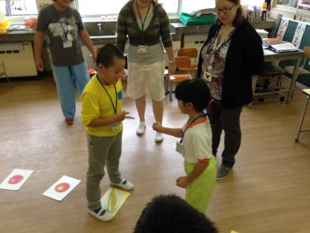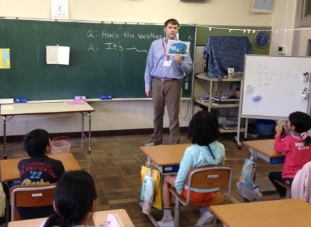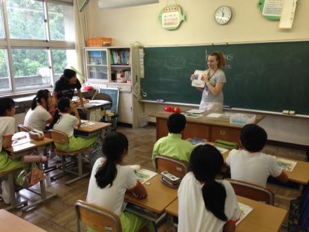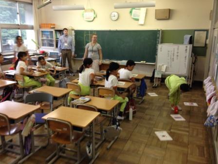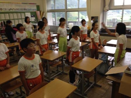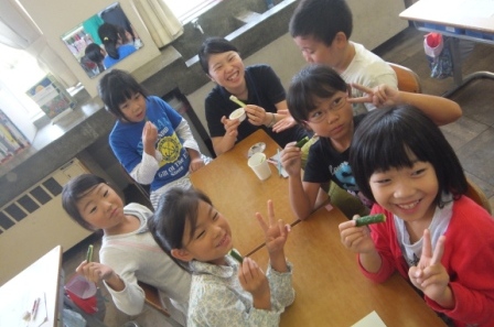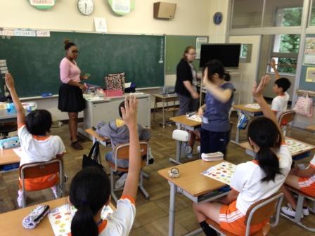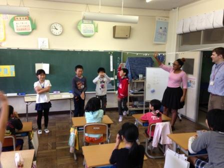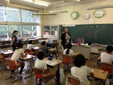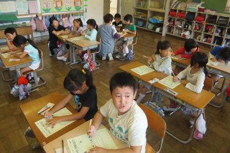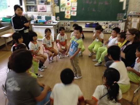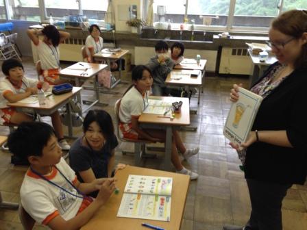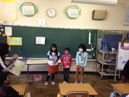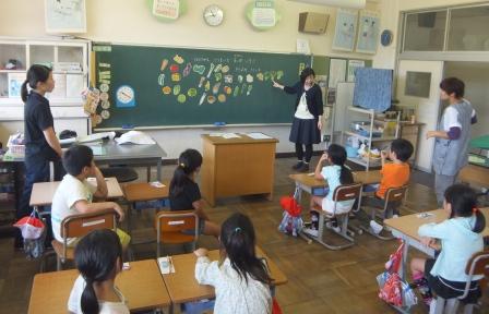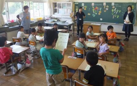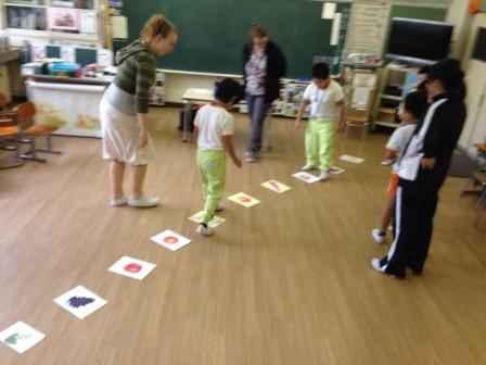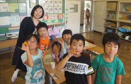 9月9日(水)3校時、夏休み明け初めての「英語教室」です。 1・2年生は、いろいろな野菜や果物の言い方を知り、ゲームなどでその言い方に慣れ親しむ活動です。じゃんけんゲームやフルーツバスケットで楽しく学ぶことができました。「What do you like ?」「I like ~」 3・4年生は、天気の言い方を知り、ゲームなどでその言い方に慣れ親しむ活動です。ジェスチャーゲームで楽しく学ぶことができました。「How's the weather?」「It's ~」
