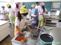 今日の1・2時間目は,6年生が調理実習を行いました。
