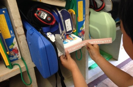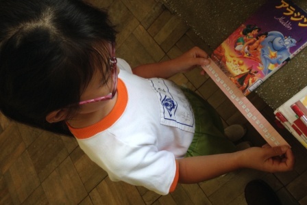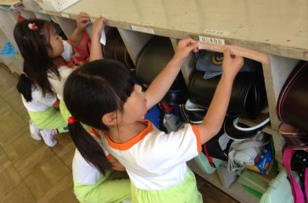 5月22日(金)1校時、2年生は算数科の学習です。2年生では、長さについて単位と測定の意味を理解し、長さの測定ができるようにします。長さの単位では、cm(センチメートル)、mm(ミリメートル)、m(メートル)について知ることになります。2年生は、いつでも長さをわかりやすく表すために、長さは1センチメートルがいくつ分あるかで表すことを学び、センチメートルは長さの単位で、cmと書くことを知ります。長さの測り方を学んだ後で、教室の中で10cmの長さのものを見つける活動を行いました。両手の幅で10cmを確認してから教室内にあるものを見つけています。ロッカーのネームプレートは?紙ものさしで測ると10cmを超えていました。本の横はほぼ10cm。粘土入れのケースの横も10cm。他にもいろいろなものを見つけていました。ご家庭にも10cmが見つかるかも知れません。お子様と探してみませんか?次の勉強は、1cmより短い長さの表し方を学びます(mm)。