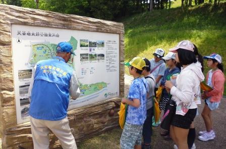 5月22日(金)、6年生が大安場史跡公園へ社会科の見学学習に出かけました。大安場史跡公園には、東北で一番大きな前方後方墳を中心とした大安場古墳群と、古墳について学べるガイダンス施設があります。子どもたちは、史跡見学や体験学習を楽しんできました。