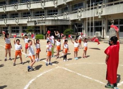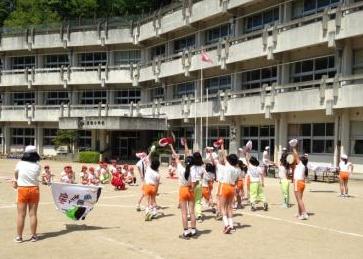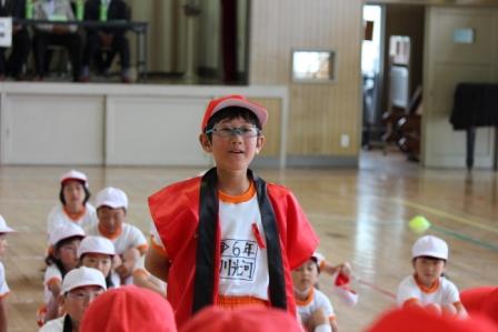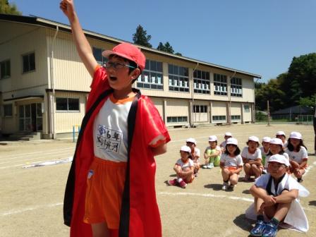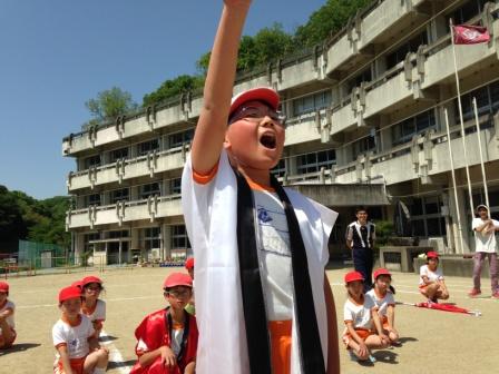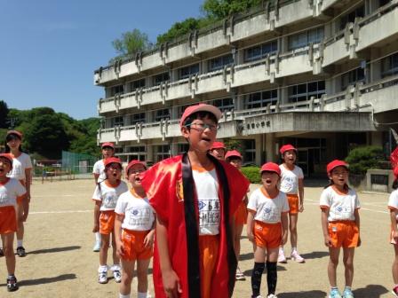 5月14日(木)昼休み、応援合戦の練習です。応援団長は声をからしながら大きな声で団員を盛り上げます。団員も団長の気合い、元気いっぱいの声で応えます。かっこよくなってきました。6年生は男子2名しかいませんが、RさんとKさんのがんばりで、チーム要田43名がたくましくなってきました。かっこいい団長の姿を楽しみにして下さい。
