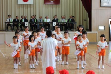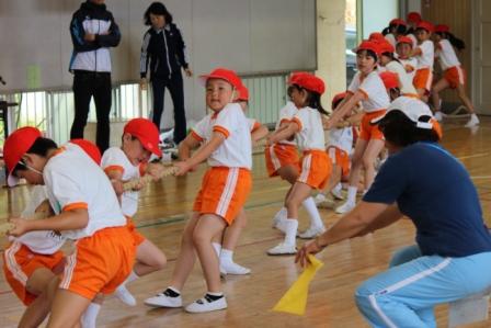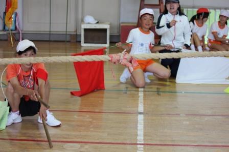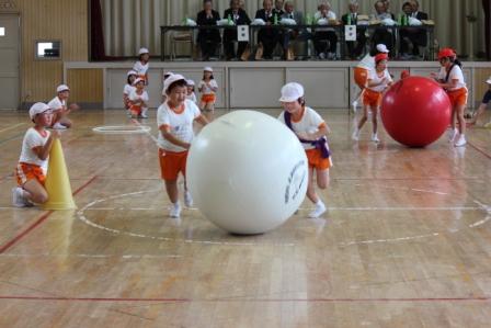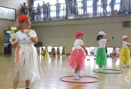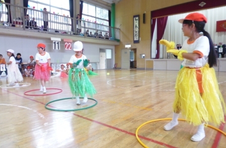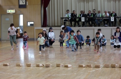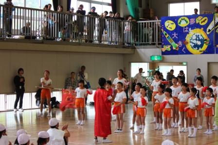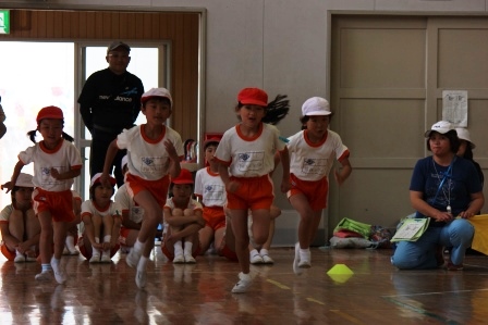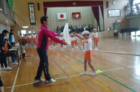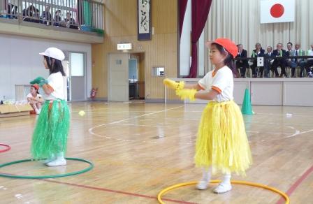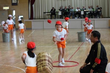 体育館でがんばった子どもたちや園児、来賓の演技を紹介します(演技順)。