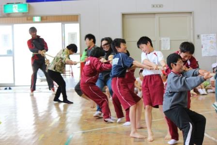 【PTA 特別 「綱引き」 腰は痛めなかったでしょうか?中学生も参加し頑張ってくれました!】