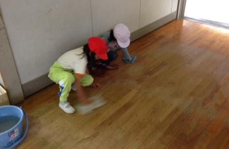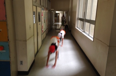 5月19日(火)、43名が元気に登校し、1校時は全員で運動会の片付け作業です。演技で使用した道具を片付けたあとは、体育館と1階廊下のぞうきんがけです。心を込めてふきました。「運動会楽しくできました。ありがとう!」