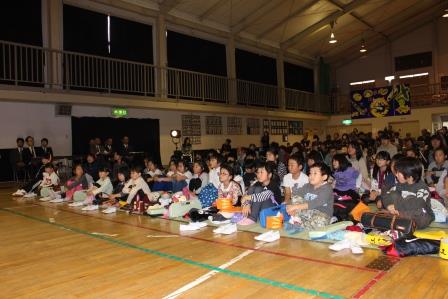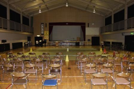 ※ 明日の天気予報は曇り。午前9時の気温は16度の予報です。体育館フロアには保護者席として、ゴザ席とパイプいす席を準備しました。ストーブの準備もしましたが、座布団や膝掛け等の防寒具の準備もお願いいたします。