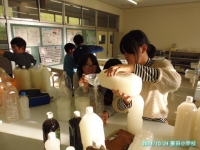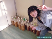 2014年11月11日 15時57分 11月11日(火),エコスポーツ委員会でEM作りをしました。各家庭から,EMの材料になる,米のとぎ汁を持ってきてもらい,それを使って,EMを作りました。上手にできるか,1週間後が楽しみです。
