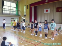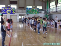 今日の全校集会では,田村市小学校水泳大会に出場する4・5・6年生