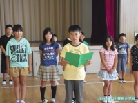 を応援する会が行われました。児童代表の激励の言葉や選手紹介,選手代表あいさつがあり,4年生が中心になった応援団による応援がありました。7月23日の水泳大会ではベストを目指して頑張ってほしいと思います。