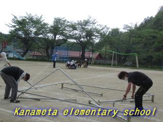 明日は校庭で実施の方向です