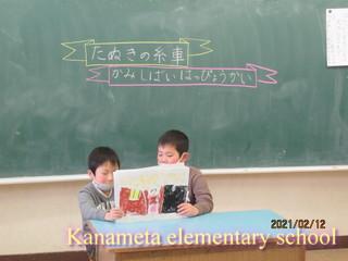 1年生の国語では「たぬきの糸車」の紙芝居の発表会をしました