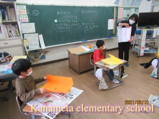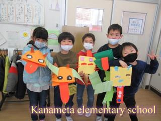 2021年2月10日 15時54分1年生は,図工での発表会のあと記念撮影です