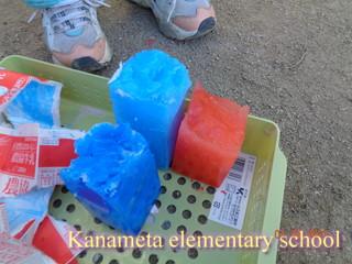 昨日生活科で作った氷が出来上がりました
