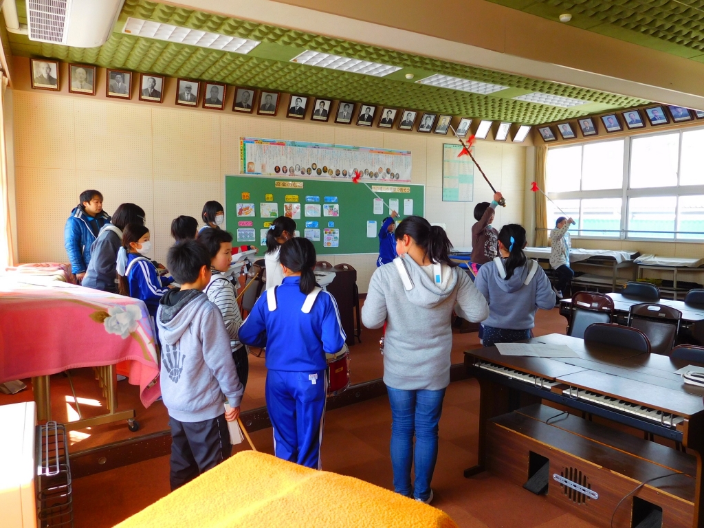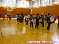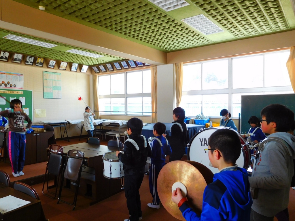 ふれあい集会の時間に,初めて鼓笛の全体練習を行いました。今までパート毎に練習してきたものを主指揮の指揮のもと,全体で合わせました。これまでの練習の成果がでていて,上手にできていました。これからさらに上手になるように練習を重ね,3月の移杖式を迎えたいです。なお,インフルエンザの流行の兆しが見えてきました。手洗いうがいの励行をお願いします。