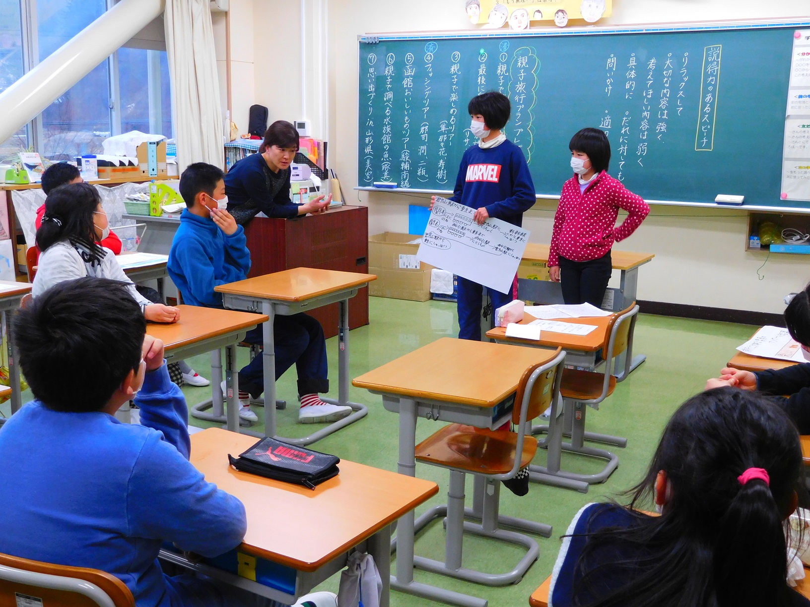 5年生は,県中教育事務所の森藤先生に算数の授業をしていただきました。四角形や六角形の面積を半分にする直線をひく学習でした。これまで学習してきたことを生かし,友達と相談したり伝えたりしながら充実した考える算数の時間でした。新学習指導要領を受け,主体的,対話的,深い学びの学習のさせかたをわたしたち教師も学んでいきたいと思います。