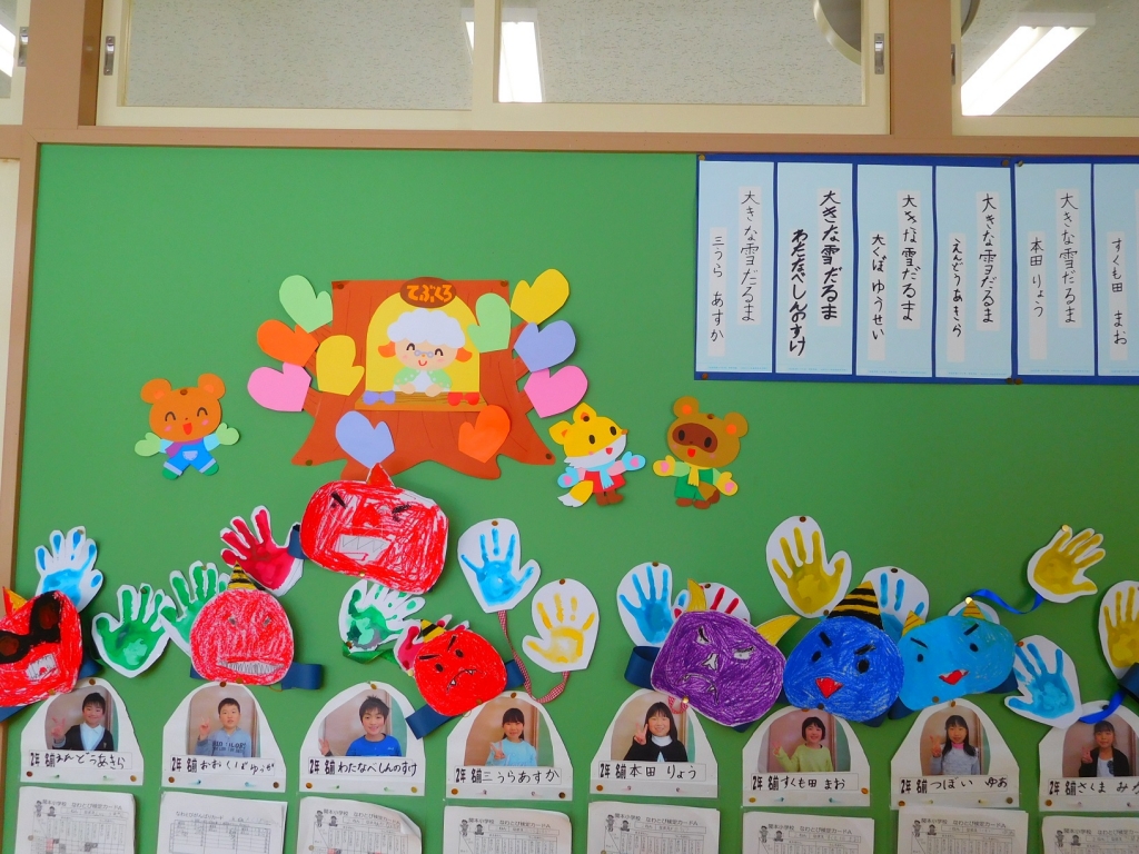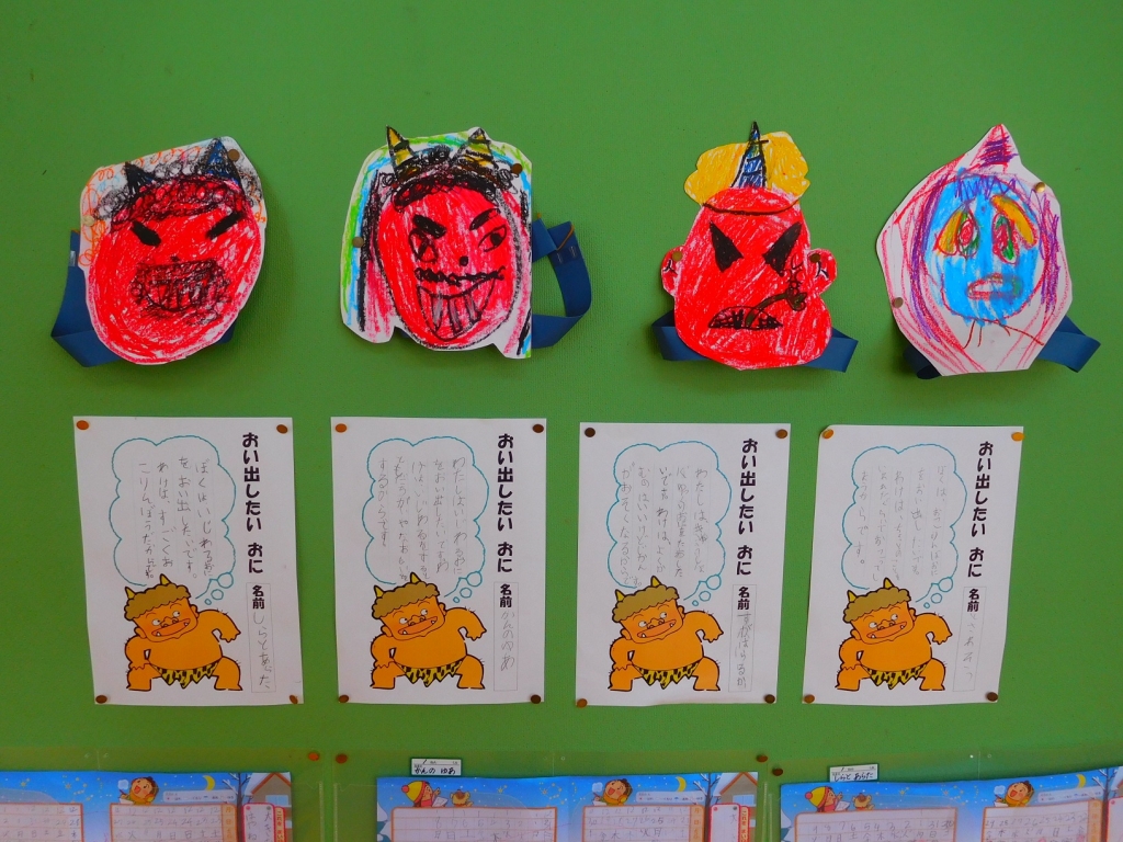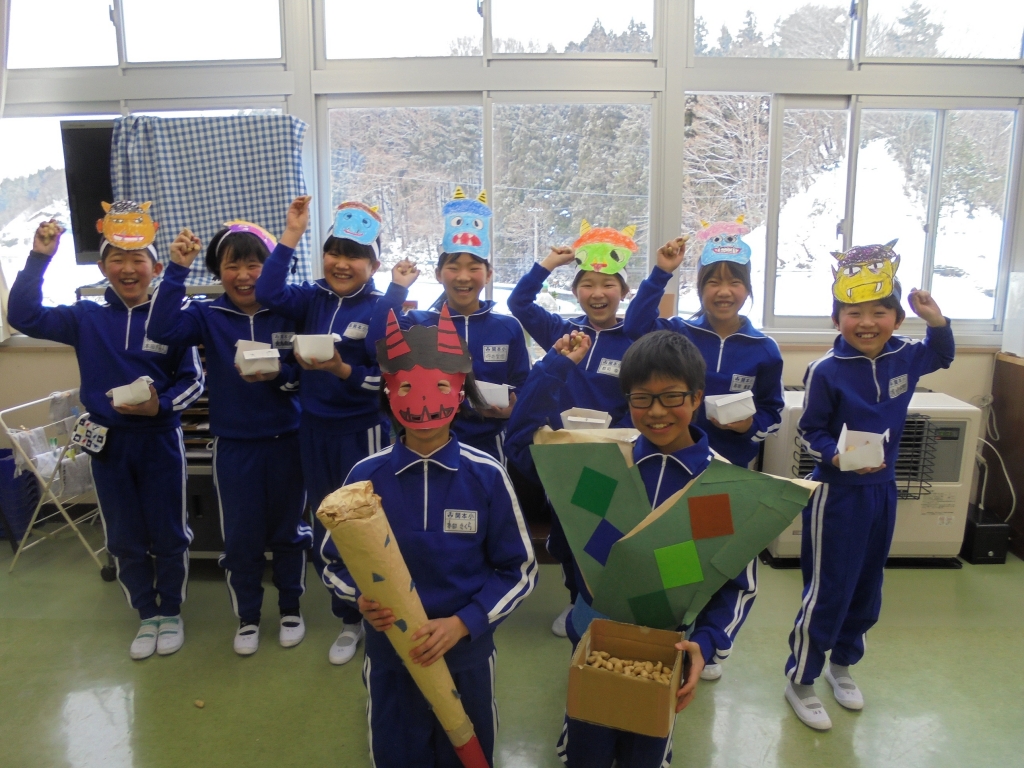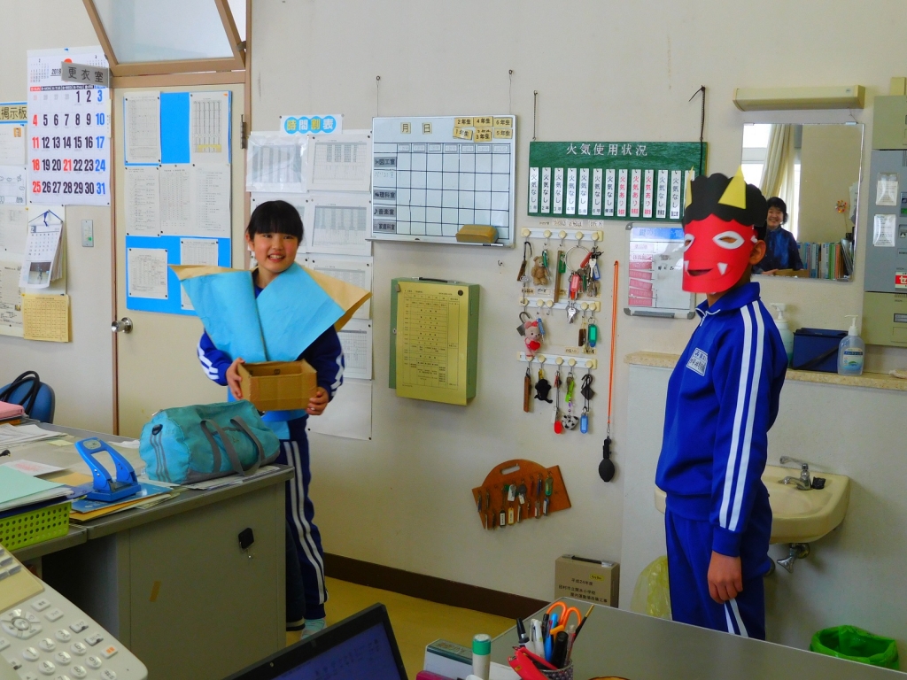 低学年では、早速、心の鬼の追い出しに取りかかっています。関本小全員の子どもたちが、心の鬼を追い出し、心豊かでたくましい子どもたちに成長していくことを願っています。