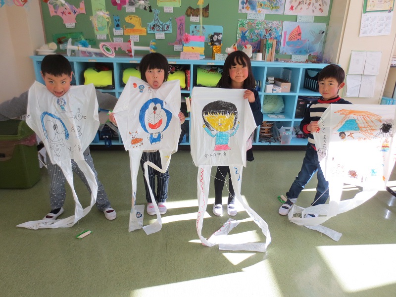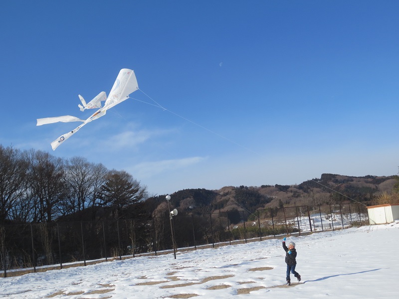 昨日、1年生はたこ揚げを行いました。上校庭は時々強い風が吹き、たこ揚げには絶好のコンディション。子どもたちはオリジナルのたこを作り、純白の広々とした校庭で、思う存分たこ揚げを楽しみました。