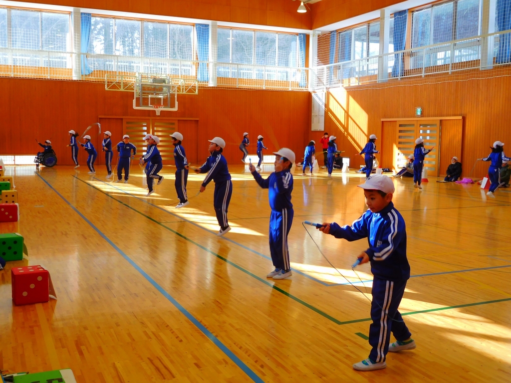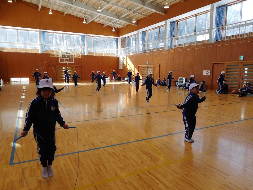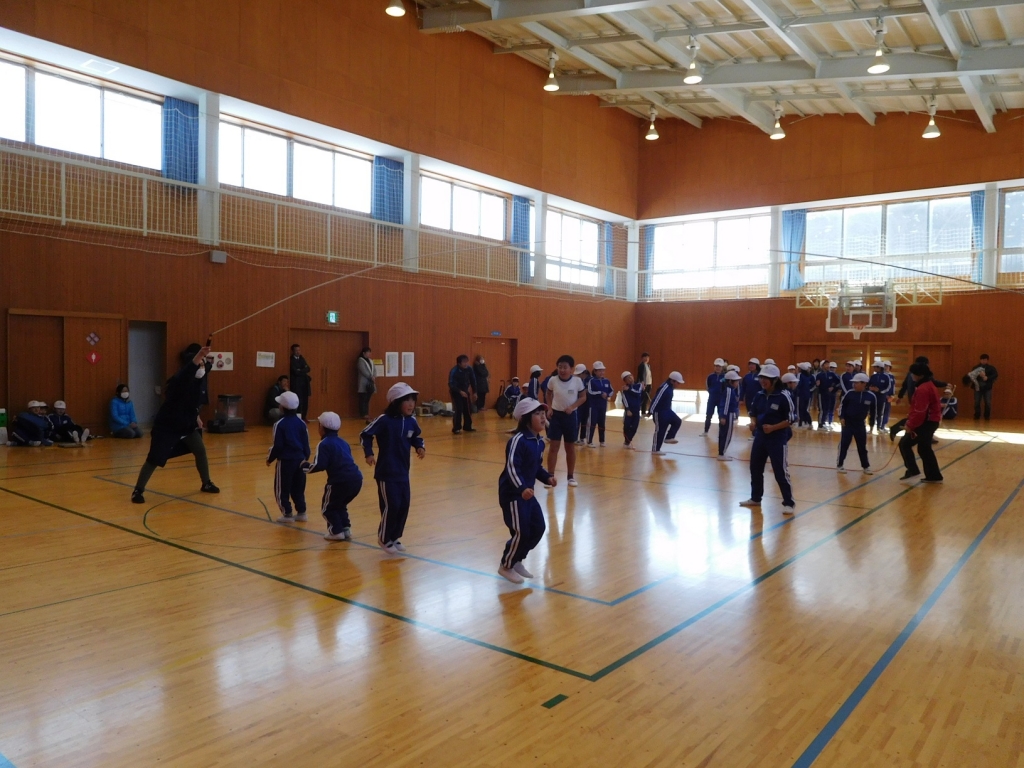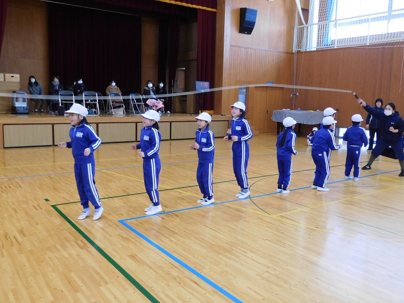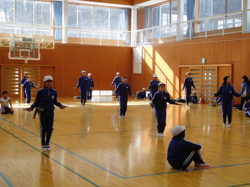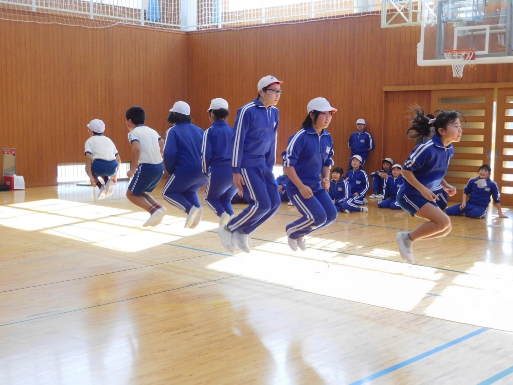 今日の2・3校時に校内なわとび大会を実施しました。20名近くの保護者の方々の応援を受け、子どもたちは、なわ跳びに進んで取り組み、体力や技能の向上を図りながら自己ベストを目指して挑戦しました。なが縄跳びでは、学級ごとに、「1分間スピードとび」と「全員とび」に挑戦しました。どの子どもたちも不安やプレッシャーをはね除け、一致団結して記録に挑みました。