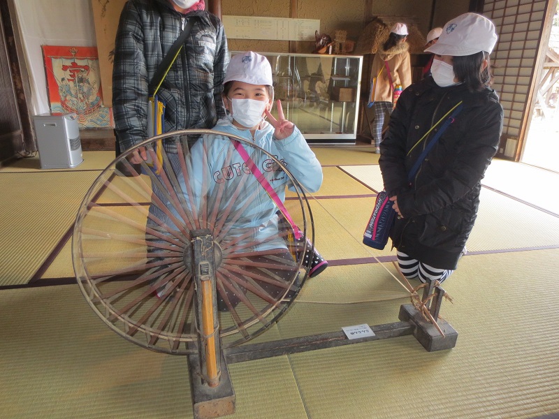 3年生は社会科で「古い道具と昔のくらし」を学習しています。今日は、大正~昭和の家庭生活で使用した実物の道具類を見学し、昔の人々のくらしを理解しようと歴史民俗資料館に出かけてきました。子どもたちは、昔の道具の使用方法を聞き、現在の電化製品と比較することで、豊かなくらしと昔のくらしに思いを巡らせていました。