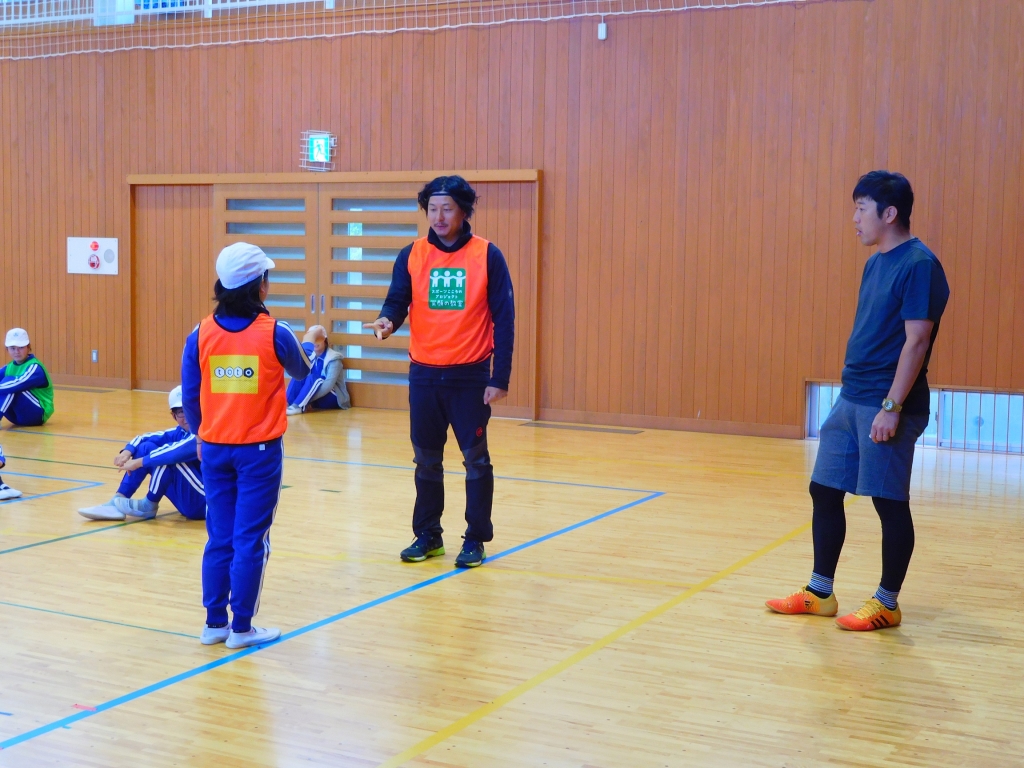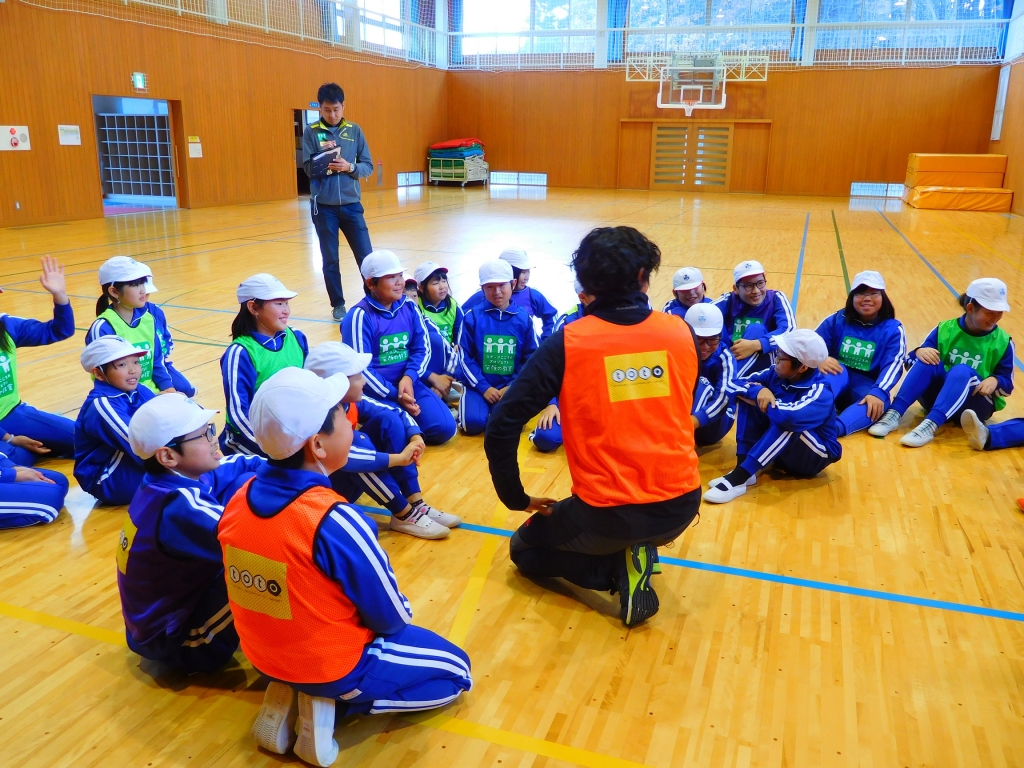 東日本大震災で被災した子どもたちのこころの回復の支援を行うプロジェクトの一環として、5・6年生の児童を対象に「スポーツ笑顔の教室」を開催しました。前半の時間は、夢先生と一緒に体を動かす「ゲームの時間」。後半は、夢先生と語り合う「トークの時間」として、夢先生の体験談をもとに、挫折や失敗を乗り越え、夢を持つことの素晴らしさやそれに向かって努力することの大切さを伝えていただきました。