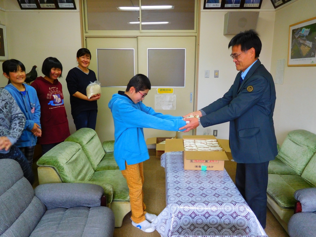 5年生が10月26日に稲刈りを行いました。本日、佐藤さんのご厚意で、5年生一人一人に袋詰めされたお米をいただきました。子どもたちは、改めて収穫の喜びを実感すると同時に、農業や食の未来についても考えを新にしていました。