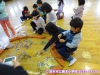 常葉小学校に,常葉小1年生,西向小1年生,関本小1年生,幼稚園の年長さんが集まって交流会が行われました。まず,学校ごとにあいさつをしました。次に常葉小のお友達をお手本に全員でダンスをしました。そして,各学校ごとに分かれて活動しました。関本小に入学予定の幼稚園生には,準備していった魚釣りをしてもらったり,一緒に「花いちもんめ」のゲームをしたりして交流をしました。1年生の子どもたちは,つりのやり方を教えたり,絡まった糸をほどいてあげたりなど,ちょっぴりお兄さんお姉さんになった様子が伺えました。最後に代表者が感想発表をして交流会は終わりました。