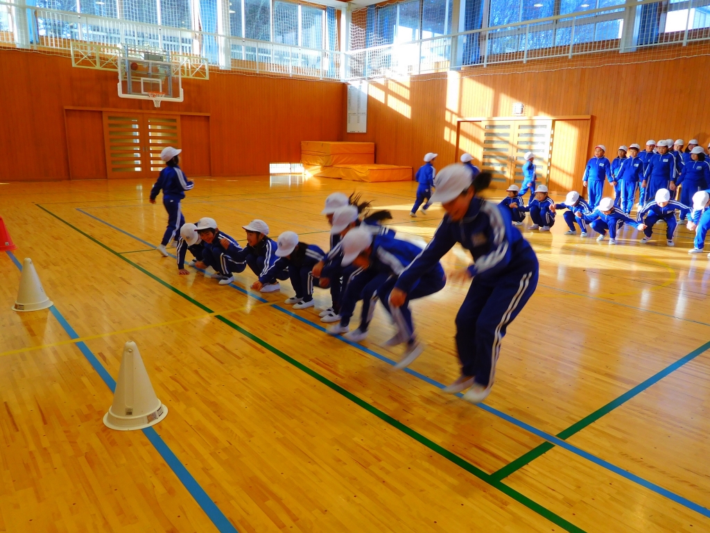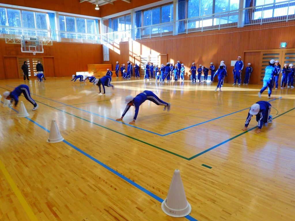 2017年11月29日 19時04分 子どもたちは、半数以上が登下校にスクールバスを利用しています。日常的に歩いたり運動したりする機会が少なくなってきているという実態から、体育の時間を中心に体力つくりを計画的に実施しています。週1回の運動タイムでは、縦割り班で楽しく基礎的な体力つくりを行っています。