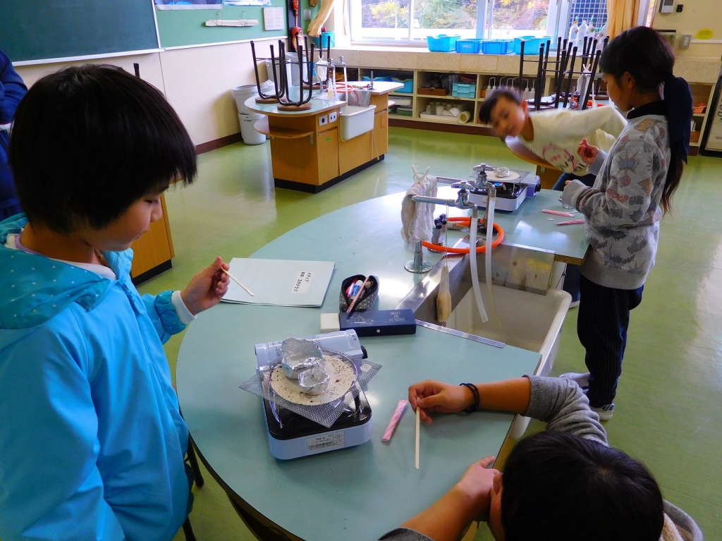 6校時目に今年度最後になるクラブ活動を行いました。先週は、3年生のクラブ見学があり、来年度の活動に向けて意欲づけを図りました。今日の活動ですが、スポーツクラブは校庭でポートボールのゲームを行いました。家庭クラブはポップコーン作りを行いました。塩味やキャラメル味に仕上げ、口いっぱいに頬張りながらおいしそうに食べていました。メディア・科学工作クラブは、理科室でべっこう飴作りを行い、砂糖水が少しずつ固まっていく様子を興味深く観察していました。自分たちで計画して実践する自主的・実践的な態度が育ってきています。