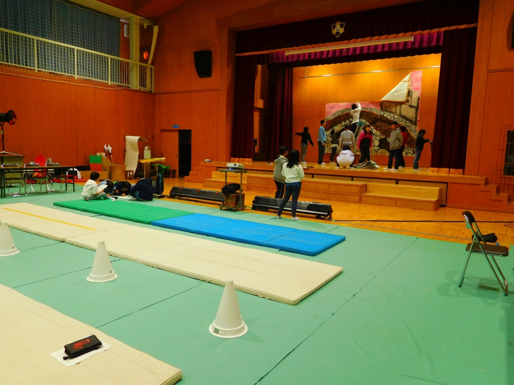 いよいよ明日は、学習発表会本番です。子どもたちはご協力をいただきました素敵な衣装に着替え、最後の練習に臨んでいました。また、大道具も整い、後は本番を待つばかりとなりました。明日は、7:30開場です。体育館南口よりお入りください。マット席、パイプ椅子席等ありますが、譲り合ってご利用ください。なお、下足はそのままお手元で保管をお願いします。駐車場は上校庭、下校庭、バス回転場をご利用ください。最後に寒さが予想されますので、暖かい服装でおいでください。ご来校をお待ちしております。