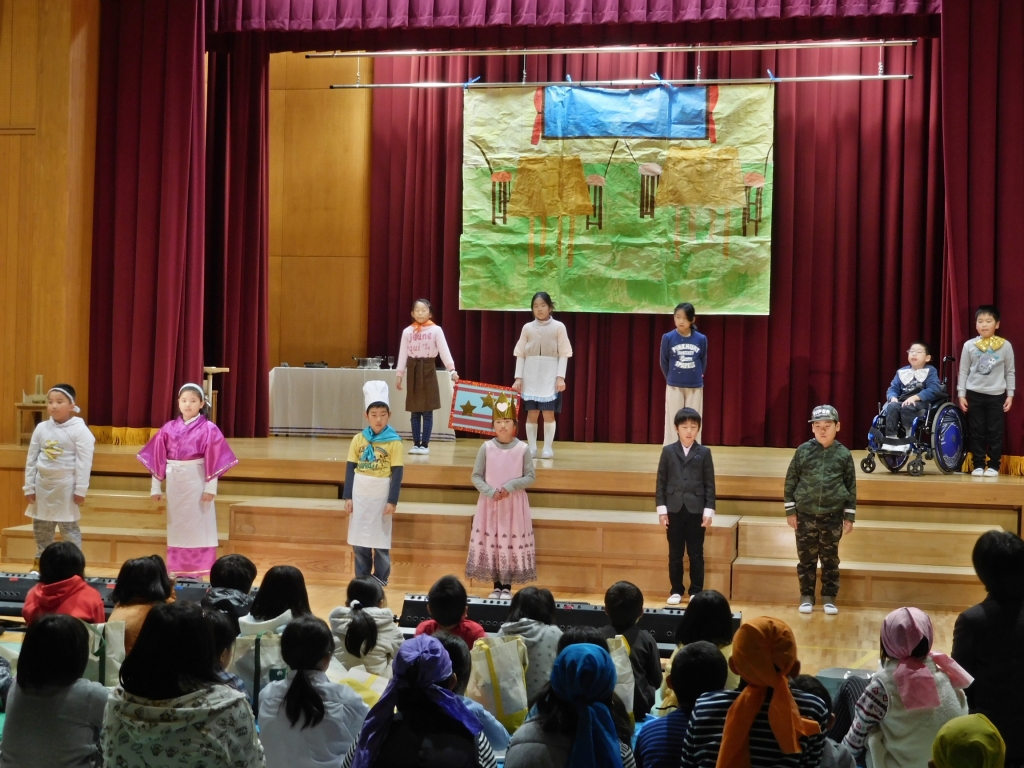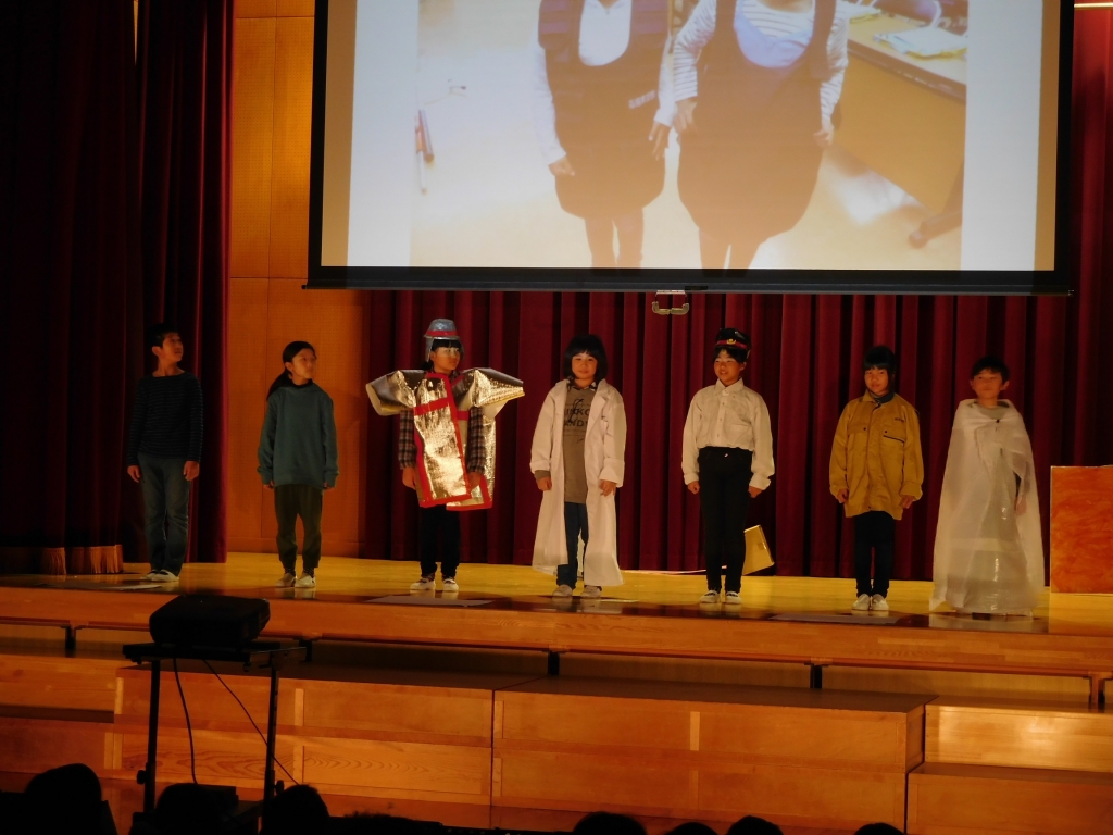 いよいよ11日(土)は学習発表会です。当日は来校される方々に感動や笑い(?)を届けようと、子どもたちは精一杯頑張って練習を重ねてきました。すでに学年便り等で発表内容については、ご存じのここと思いますが、本日、予行演習を行いました。学年の学習内容や実態に合った素晴らしい発表に仕上がっていました。後2日ありますので、舞台狭しと駆け回りながらも、感動的なラストシーンで終えられるよう、さらに子どもたちの表現力にも磨きがかかるものと思います。
