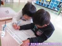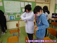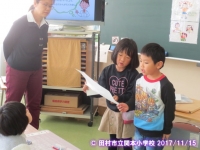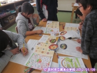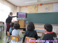 2017年11月15日 16時22分 1年生と6年生は,給食センターの栄養士の方においでいただき,食について教えていただきました。1年生は,3つの食品群をバランスよくとると健康につながることを,6年生は,栄養のバランスよく考えた献立を作る学習を通して,食や栄養について正しく理解することができました。