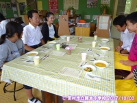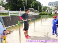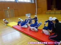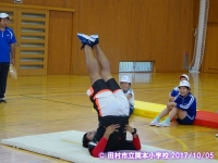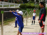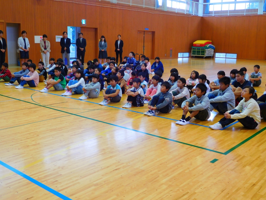 体育専門アドバイザーの先生に,1・2年生は,鉄棒で逆上がりのこつを,3・4年生は,マットで後転や開脚後転する際の腰の上げ方や手の使い方を,そして高学年では,サッカーゲームの楽しさを教えていただきました。教えていただいている子どもたちの目はとても輝いていました。