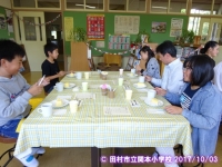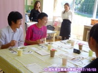 2017年10月18日 18時32分 5・6年生の子どもたちは、日本伝統の楽器「箏、三絃」の魅力にふれるため、演奏を体験しました。3名の講師の方々に、「さくら」を指導していただきました。演奏に慣れるまで時間はかかりましたが、集中して取り組んだことによりなんとか途中まで演奏できるようになりました。貴重な体験になりました。