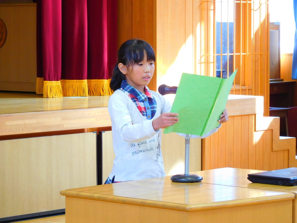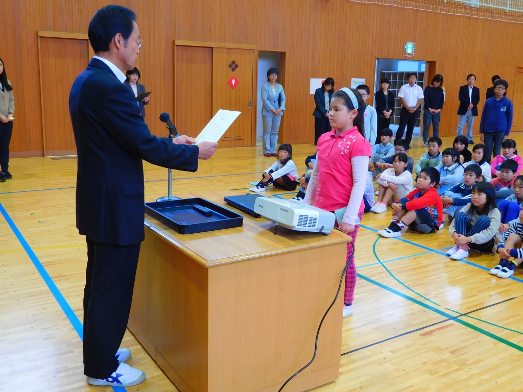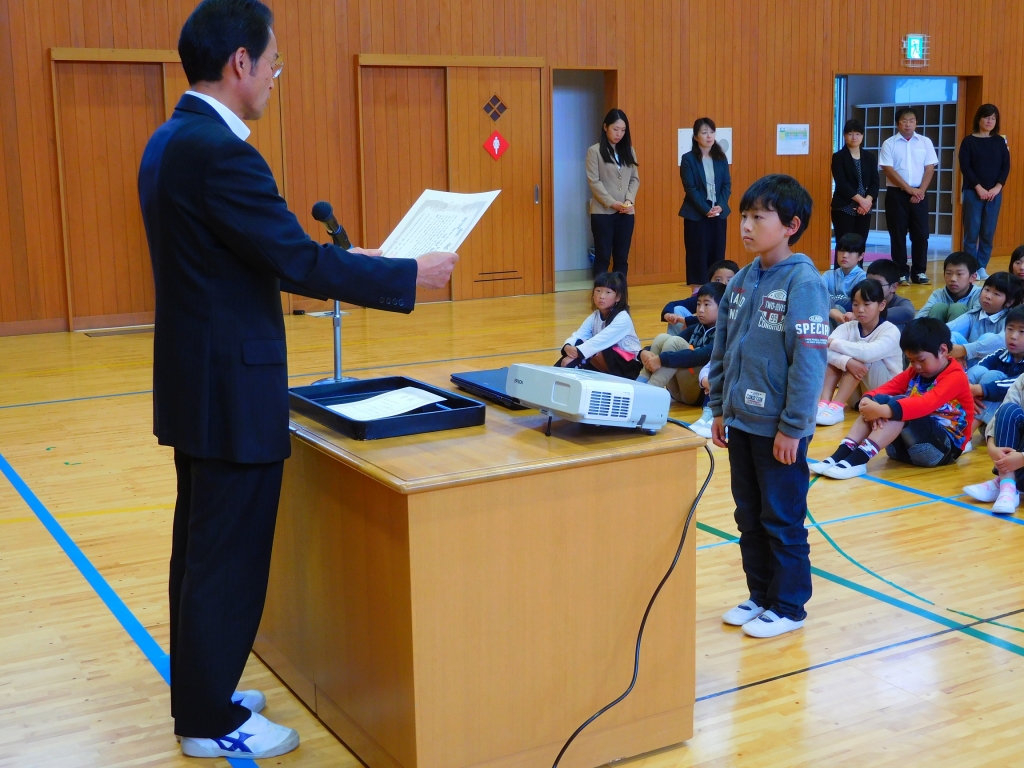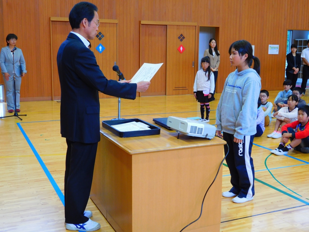 本日、後期の始業式を行いました。三連休明けの子どもたちは、少し疲れた表情を見せていましたが、式に臨んだ子どもたちからは、後期への期待感が感じられました。校長先生から、教育目標である「かしこい子ども」、「やさしい子ども」、「たくましい子ども」を目指して、目標をもって自らを生かし・試していって欲しいとのお話がありました。次に、代表児童による後期への抱負発表では、学習面・生活面で取り組んでいきたいことの発表がありました。学年のまとめや卒業に向け、目標が達成できるよう支援していきたいと思います。