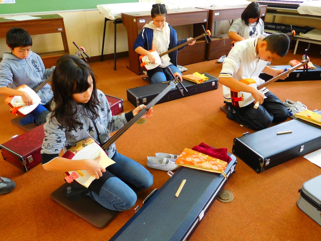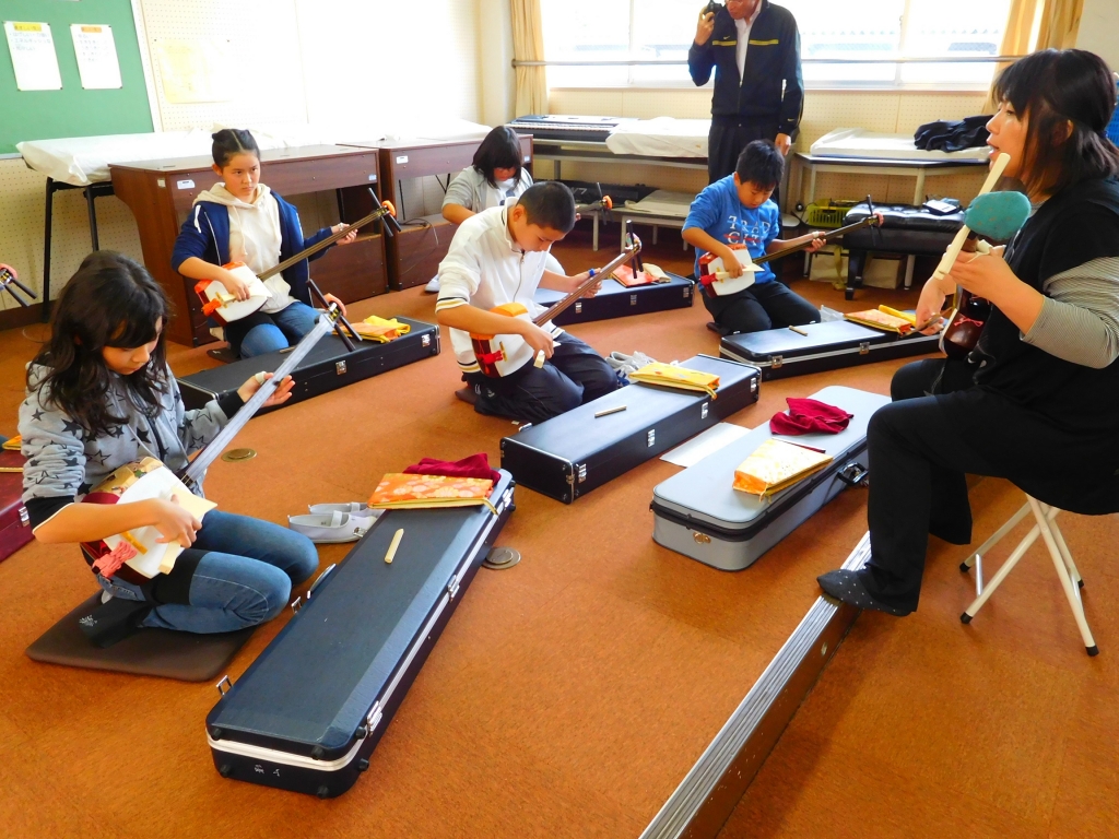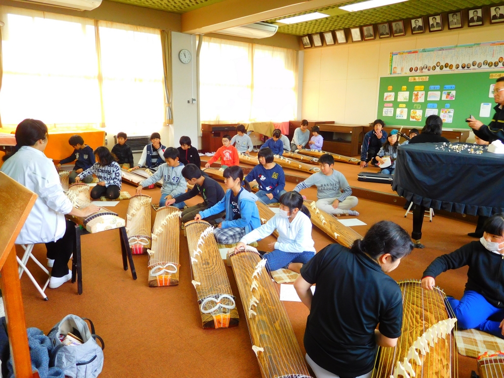 5・6年生の子どもたちは、日本伝統の楽器「箏、三絃」の魅力にふれるため、演奏を体験しました。3名の講師の方々に、「さくら」を指導していただきました。演奏に慣れるまで時間はかかりましたが、集中して取り組んだことによりなんとか途中まで演奏できるようになりました。貴重な体験になりました。