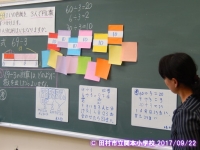 22日に,3年生がわり算の学習をしている様子を,先生方で参観しました。96÷3はどうやって計算したらいいか,考えを発表し合いました。一生懸命考えている様子がよく伝わってきました。