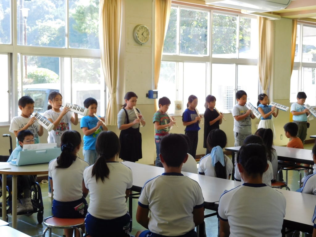 昨日、3年生の発表集会が行われました。まず、「わたしと小鳥と鈴と」の詩を心を込めて朗読しました。次は、鍵盤ハーモニカと笛の演奏とダンスです。約3週間、練習を重ねてきた演奏やダンスを披露しました。ダンスはテレビでおなじみの「警視庁生きものがかり」に挑戦しました。見ていた子どもたちや先生方から、「かわいいダンスでした。」「息が合っていて、とても上手でした。」とお褒めの言葉をいただきました。11人全員が心を一つにして取り組んだ素敵な発表会になりました。