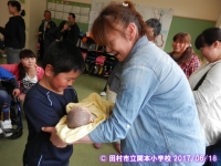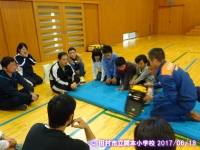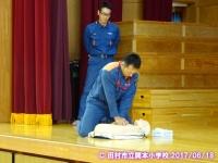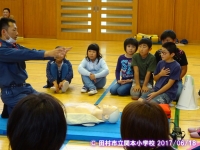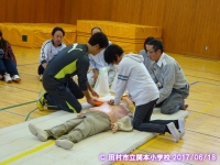 18日に5・6年生と保護者の皆さん対象に,PTA育成委員会主催の心肺蘇生法講習会を行いました。消防士の方4名を講師にまねいて,心臓マッサージについて真剣に話を聞いたり実技を行ったりすることができました。また,普段目にすることのないAEDの中身を見せていただくことができました。何度研修しても,どきどきしてしまいます。