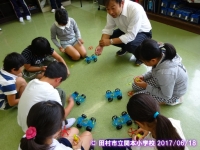 1年生4名が,常葉幼稚園に行って園児との交流学習を行いました。ついこの間まで通っていた幼稚園を見て「なつかしい。」という声が聞こえました。幼稚園児と遊ぶ中で,ちょっぴりお兄さんお姉さんになった気分を味わいました。