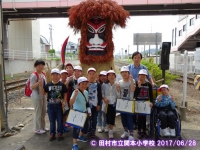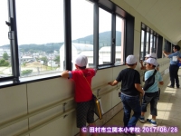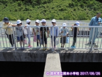 3年生では,社会科で田村市の様子を学習します。その導入として,関本地区と違う田村市の様子を見学してきました。船引駅前や西部工業団地,そして片曽根山から船引地区全体を眺めてきました。家並みの多さや,工場の大きさに驚いていました。また,「家族が勤めているよ。」と話してくれる子もいました。「田村市って○○なところだよ。」と話ができるように学習を進めていきたいです。