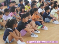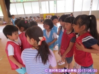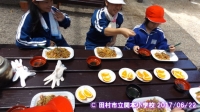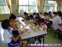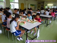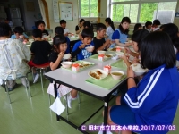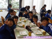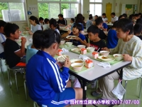 2017年7月3日 19時49分 今年度は,縦割りのなかよし班ごとに給食を食べる交流給食を,月の初めに行っています。7月3日は,2回目の交流給食でした。日頃は,学年で食べているのですが,縦割り班なので,少し話題に気をつけながら食べています。1年生も仲良くなった上級生とおいしく給食をたべることができました。
