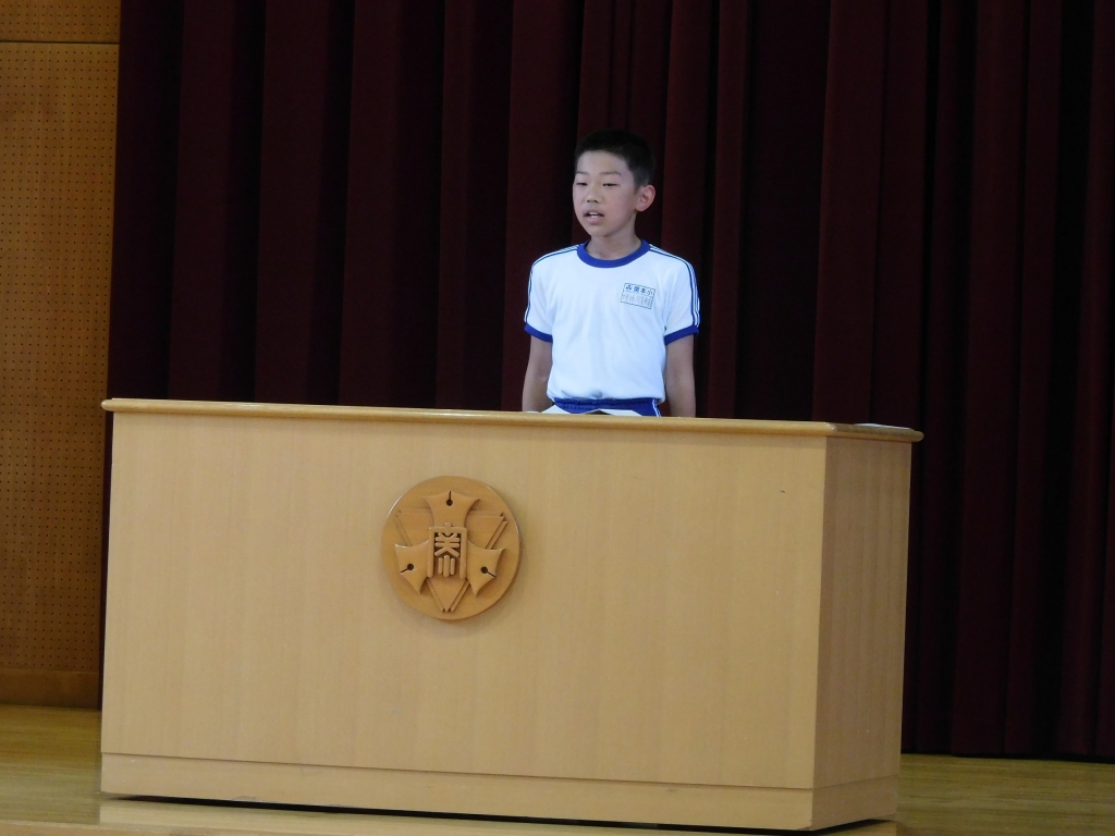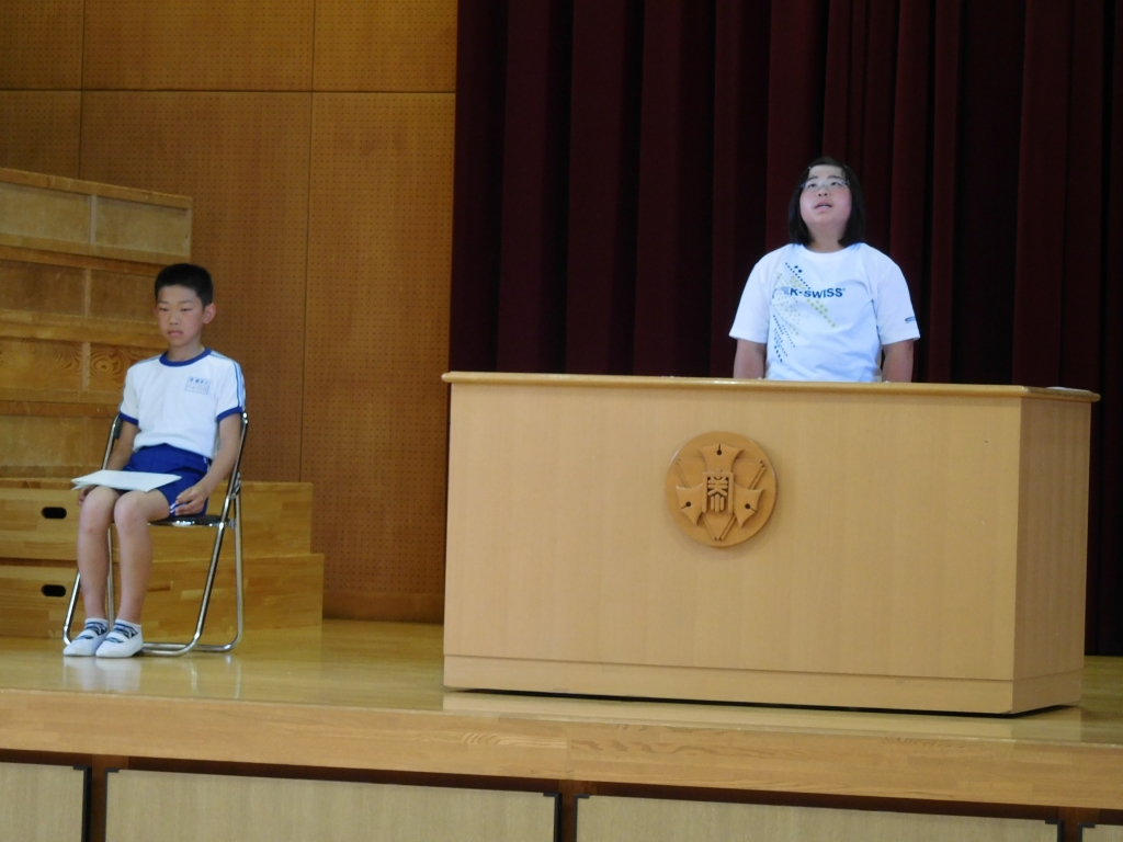 7月1日に常葉公民館で行われる「少年の主張大会常葉支部大会」の発表練習を行いました。5・6年生の代表児童は、全校生を目の前にして、やや緊張気味でしたが、自分の体験を素直に表現し、共感を誘うメリハリのある発表をすることができました。当日はもっと緊張することと思いますが、充実感・達成感を味わうとともに、貴重な経験としてこれからに生かして欲しいと思います。