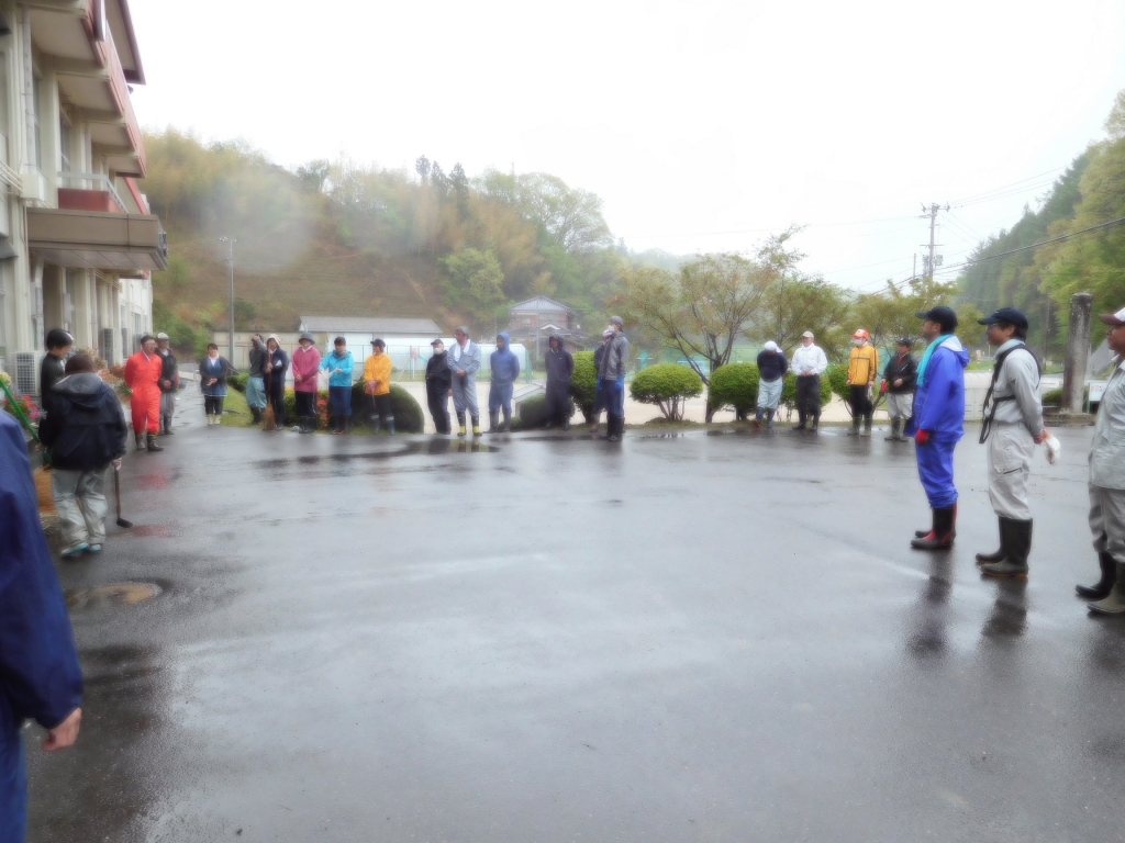 本日は早朝より奉仕作業のご協力ありがとうございました。昨日からの降雨で足下が悪いうえに、小雨という状態の中でしたが、予定していました作業を無事終了することができました。また、施設委員による資源回収、育成委員会による校舎周辺の安全点検ならびに危険箇所点検の実施、さらに、PTA役員による運動会の看板設置等と時間内に終了することができました。誠にありがとうございました。