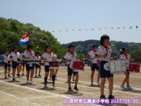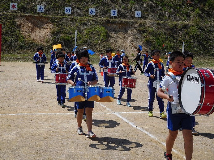 素晴らし天候のもと,運動会が行われました。児童は,精一杯競技や係の仕事,応援にがんばっていました。鼓笛の一部をお知らせします。
