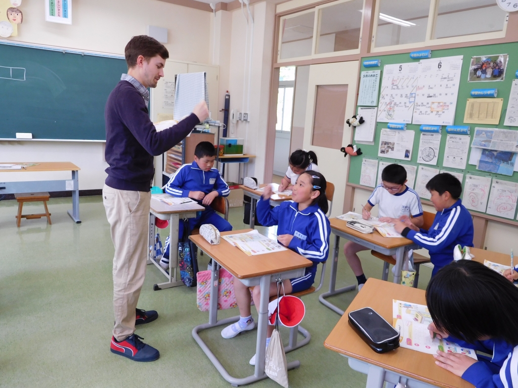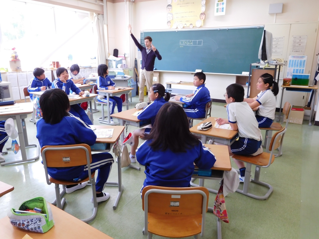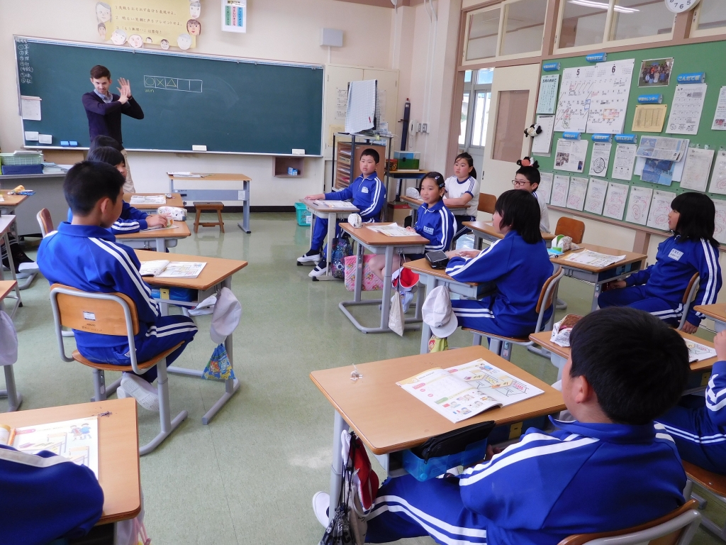 今日は学校教育英語指導助手(ALT)の授業日でした。子どもたちは外国語の音声や基本的な表現に慣れ親しもうと、言葉を繰り返したり、友だちと英語でコミュニケーションを図ったりして、楽しんで学習していました。