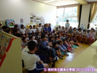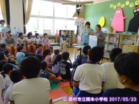 本日,昼休みにボランティアの方の読み聞かせがありました。図書ホールに全校生で集まって,「まんじゅうこわい」「999ひきのきょうだい」のお話を読んでいただきました。また,手遊び歌も教えていただきました。全員にこにこしてお話を聞いていました。