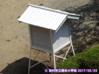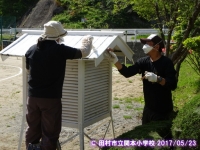 2017年5月23日 17時15分 田代地区の遠藤さんにお世話になり,校庭の百葉箱をとてもきれいにしていただきました。暑さの中一生懸命ペンキを塗っていただきました。ありがとうございました。早速,4年生が百葉箱の学習をしています。