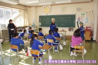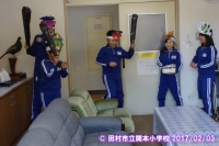 5年生が中心になって、豆まきを実施しました。